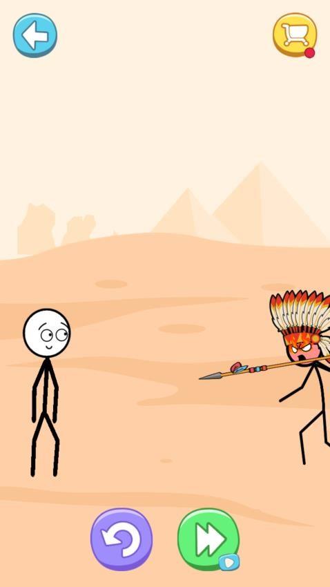 3、当你看见原始人的时候,推动火柴人直接撞击原始人的枪,以便获得过关机会。
