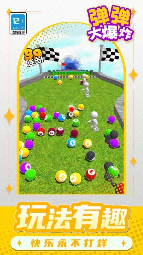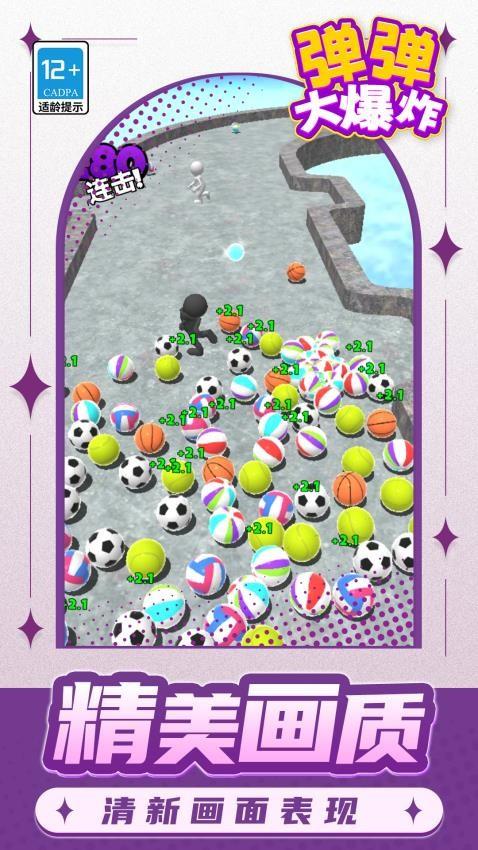弹弹大爆炸游戏是一款相当有趣的休闲益智闯关手游。在关卡中你需发射第一颗球球,只要它撞击了其他的球球便可得到球球,需要等待这些球球持续撞击新球,这样一来便可得到大量的球球;它们的力量将会越来越强,能够逐步冲破更多的铁链,冲刺到更远距离即可收获更多的成功奖励,而且你也会逐步突破自己的最高记录。各个关卡中设计了不同的距离和数量目标,你还要尽快关注特定的现象信息,之后即可很快得到相应的挑战惊喜条件,而且也能持续收获更多条件要素。如果你也对弹弹大爆炸手机版感兴趣的话,赶快来体验一下吧!