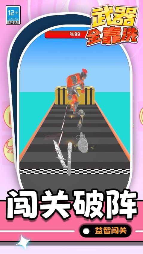 武器全靠洗游戏是一款相当好玩的休闲闯关对战手游。在关卡中你需要逐步收集更多的武器,并且使用相关的方式来清洗它们,这样即可得到更干净的外观,当你逐步解锁了足够的武器之后,便可直接对付终点的敌人,你还要及时收获相关的限定优势。快速发现相关的条件细节,玩家便可很快得到更好的闯关方法,轻松突破各个环节,便可很快解锁你所需要的武器。在跑酷过程中还要逐步提升这些武器的攻击性,及时发现不同的元素,收集起来之后便可实现这样的目的。如果你也对武器全靠洗手机版感兴趣的话,不妨来试玩一下吧!