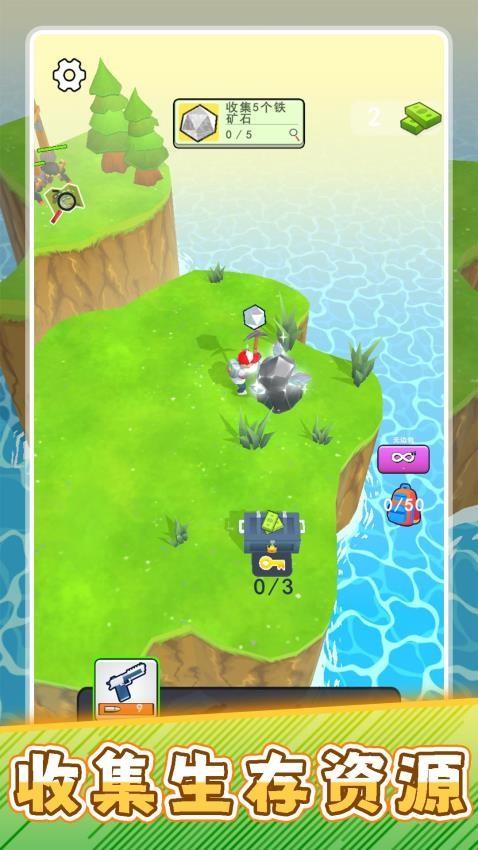 4、能够在岛屿上发现不同的箱子,尽快收集所需的钥匙,便可将这些箱子打开,获得里面存放的各种资源。