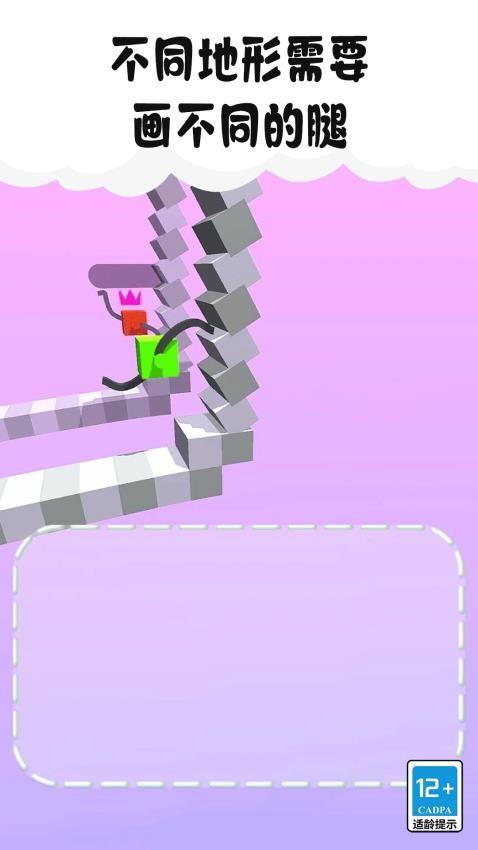 1、开启挑战之后你需尽快绘制出双腿,这样才能让方块尽快行动,不断追赶对手。