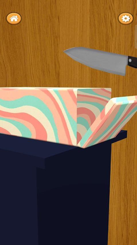直接在游戏界面使用小刀快速切割画面显示的彩色糕点,一直切割就可以释放压力。