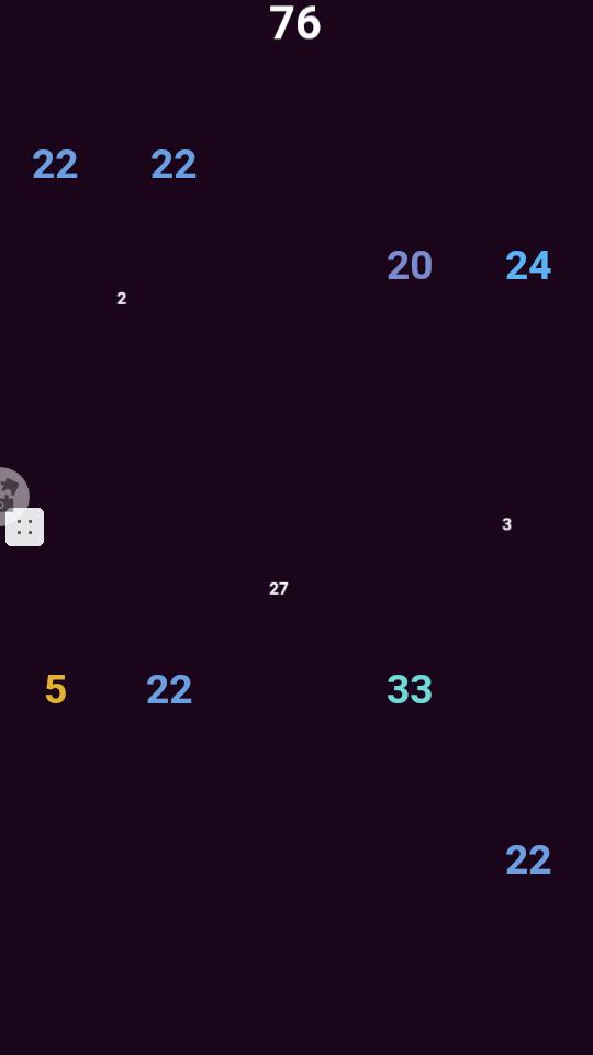 4、您需要收集27的小数字,需要碰撞高亮的20数值,需要找到一个空位躲避数字碰撞。