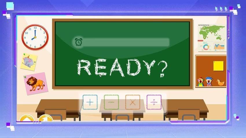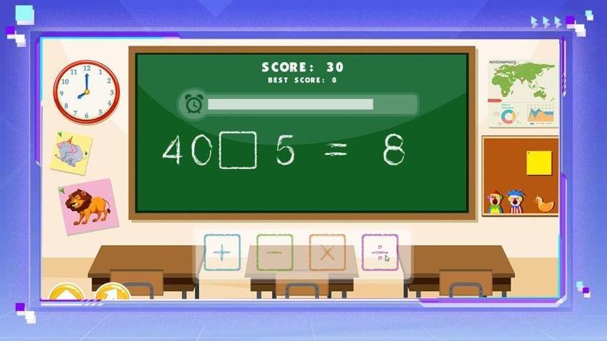 2、提供黑板场景,题目都会在教室的黑板界面显示,看清除填空区域就选择一个符号填写。