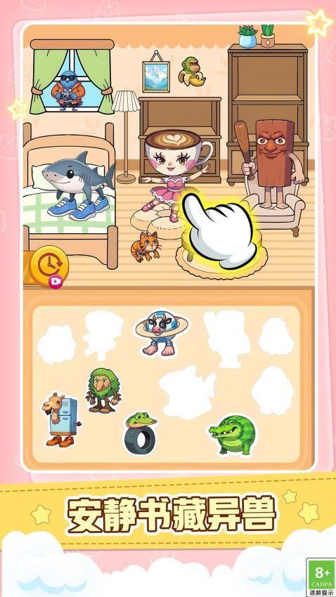 2.游戏包含磁力安静书、美女换装、动物合成等多种玩法模式。