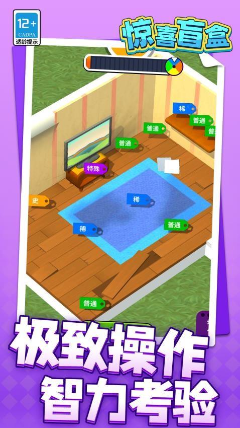《惊喜盲盒》是一款有趣的开箱解谜游戏,在游戏中,玩家需要从不同的快递盲盒中找出一些神秘物品,并尝试解开箱子,注意不要撕裂或损坏里面的物品。