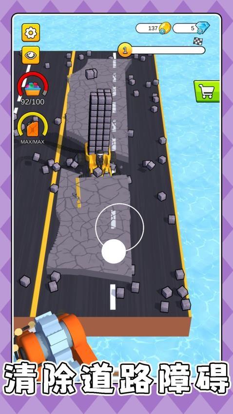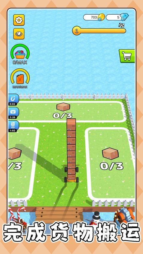 2、移动小汽车,去收集更多的积木,出售获得金币;