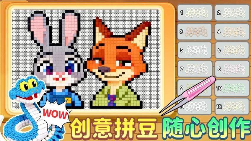 3、看见兔子和狐狸这两个角色之后,能够让玩家体验到更为复杂的拼豆涂色过程。