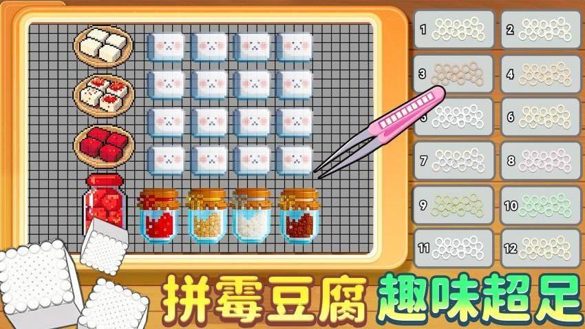 《拼豆霉豆腐》——一款治愈感直接拉满的像素涂色休闲小游戏,轻松解锁碎片时光的快乐!在这里,你就是专属指尖“拼豆大师”,面对一块块毫无色彩、单调朴素的像素霉豆腐,只需动动指尖,逐点为它们填充上鲜活色彩。不用复杂操作,没有难度门槛,指尖轻点就能开启涂色之旅,上手即沉浸。