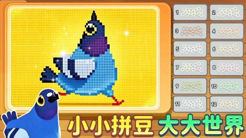 2、遇见鸽子这样的作品时,玩家需找到对应颜色的豆子,进而可得到完整的鸽子形象。
