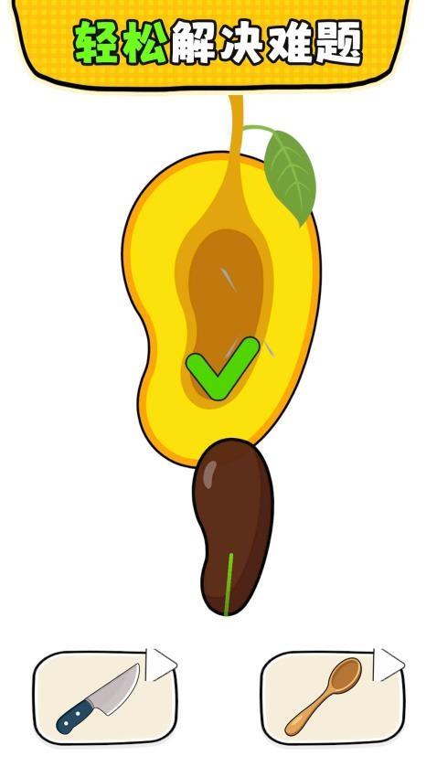2、挖水果玩法,在游戏选择正确的道具帮助玩家将画面的水果挖出来。