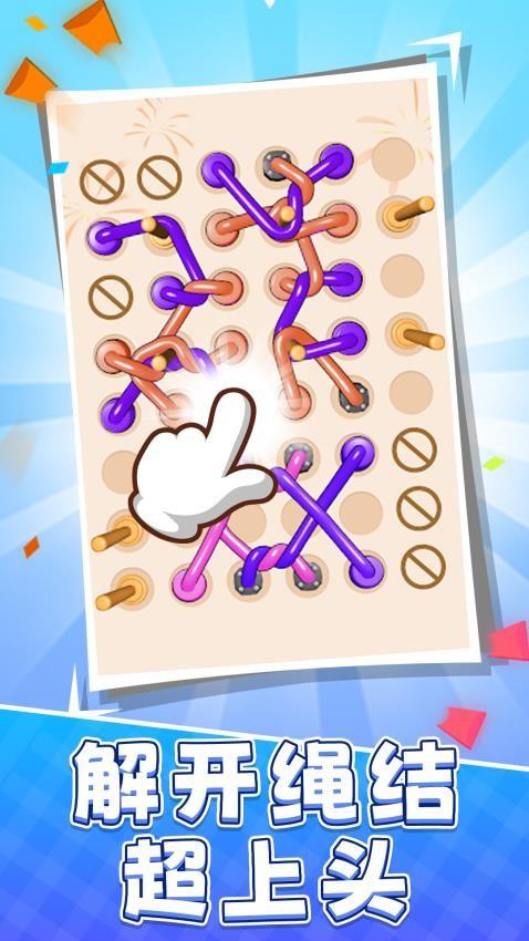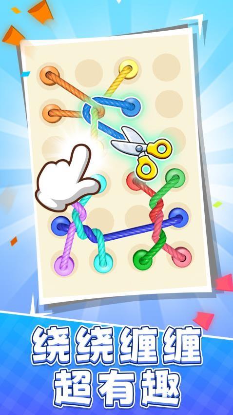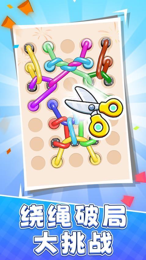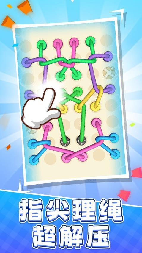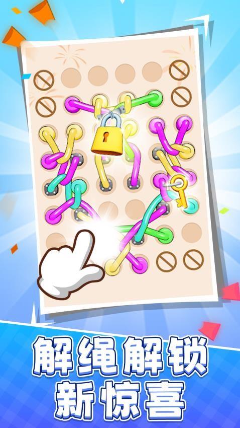 玩家需要通过松开绳子的一段,逐渐减少绳子之间的缠绕,将每条缠绕在一起的绳子拆解出来。能锻炼自己的逻辑思维和空间认知能力,快来体验一下吧!