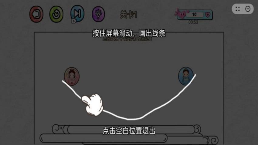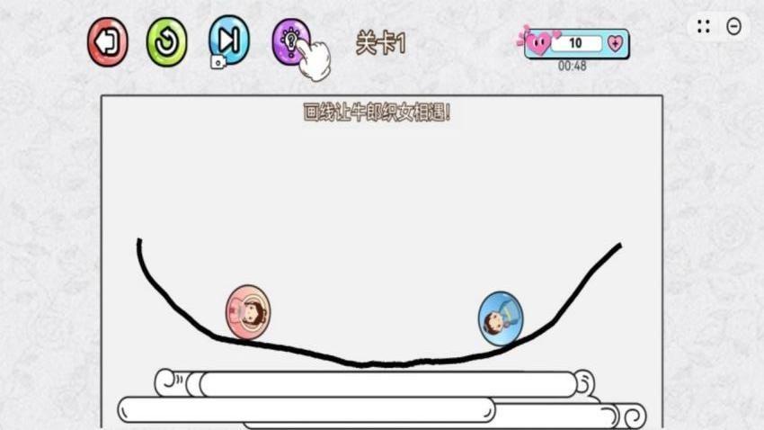 5、支持牛郎织女游戏,您需要通过画线的方式帮助两个角色相遇,成功相遇就挑战成功