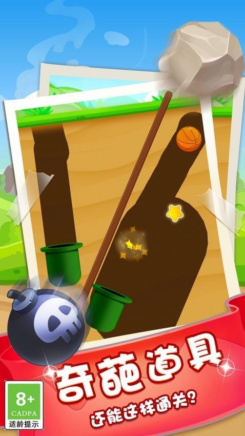 休闲类游戏,玩家通过手指在屏幕上画线,让篮球掉入球框里,丰富的关卡任务等待你来挑战,题目千变万化,耐人寻味。