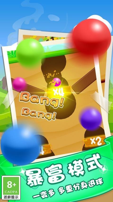 遇见多个不同的篮筐时,玩家可根据它们的颜色来选择最佳的球球,匹配之后便可开始寻找适合的路线。