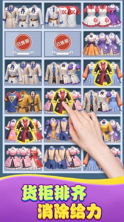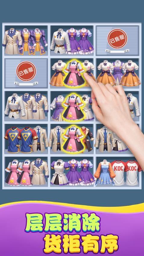 5、只要将三款相同的衣服放在一起,便可直接售卖这些衣服,能够获得相应的资金,收获足够积分。