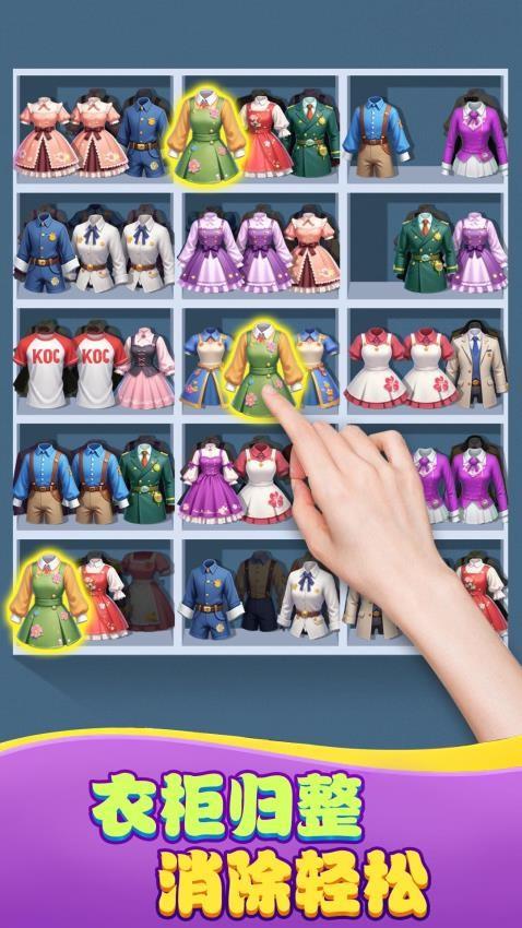 衣柜收纳整理官方版是一款以货柜消除为主题设计的休闲闯关游戏。消除的时候你需关注这些衣服的样式,找到三套相同的衣服之后便可放在同一格货柜之中,便可得到相应整理优势,逐步完成收纳分类目标之后便可得到关卡的成功。你还要注意各个关卡的挑战难度情况,只要顺利发现了相应的限定细节,即可逐步获得更好的挑战优势效果,及时突破对应的挑战问题。挑选衣服的时候你也要尽快查看对应的信息,只有逐渐确定了相关的惊喜要点,便可很快获得更好的优势机会。如果你也对衣柜收纳整理免费版感兴趣的话,快来试玩一下吧!