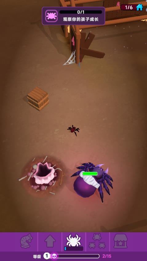 1、进入到游戏中你需要关注蜘蛛的具体情况,并且还要逐步孵化更多的蜘蛛,才能得到优势效果。