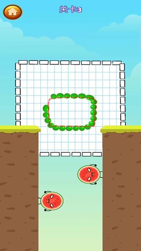 2、顶部会掉落一些攻击的道具,画线保护西瓜就挑战成功,玩法非常简单。