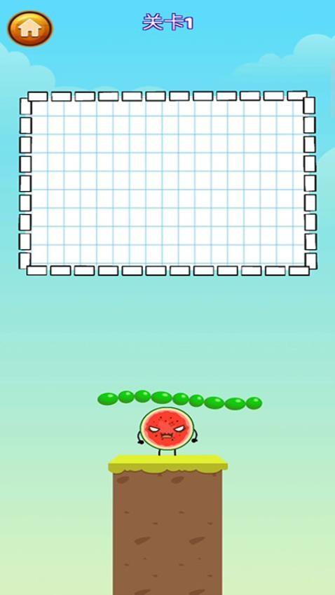 1、关卡界面如图所示,可以显示第一关界面,直接在游戏通过画线的方式保护西瓜角色。
