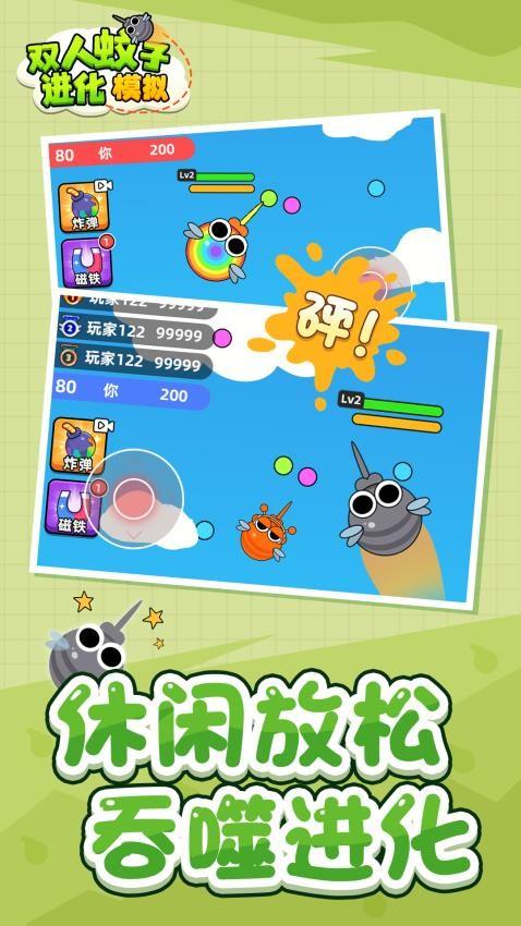 双人蚊子进化模拟游戏最新版是一款相当好玩的休闲竞技手游。在这款游戏中,玩家将会接触到不同的蚊子,需要尽快找到关键的方式来处理有关的情况,即可很快获得足够的食物,能够让你的蚊子尽快成长。只要得到了更好的机会,即可很快发现有关的限定条件,你也要顺利关注特殊的优势细节,进而可快速找到特定的信息,能够逐步解决相关的状况。蚊子的能力越来越强之后,能够在挑战期间获得相应的好处,你只需操控蚊子行动即可,之后便可得到更好的吞噬优势。如果你也对双人蚊子进化模拟手机版感兴趣的话,快来试玩一下吧!