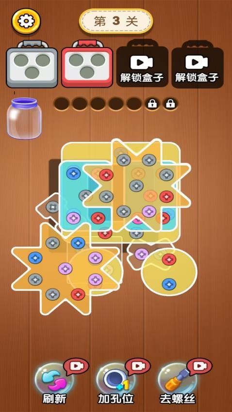 2、可以解锁全新的盒子,用来装其他的螺丝钉,这样即可得到更快的消除过程,轻松解决相关问题。