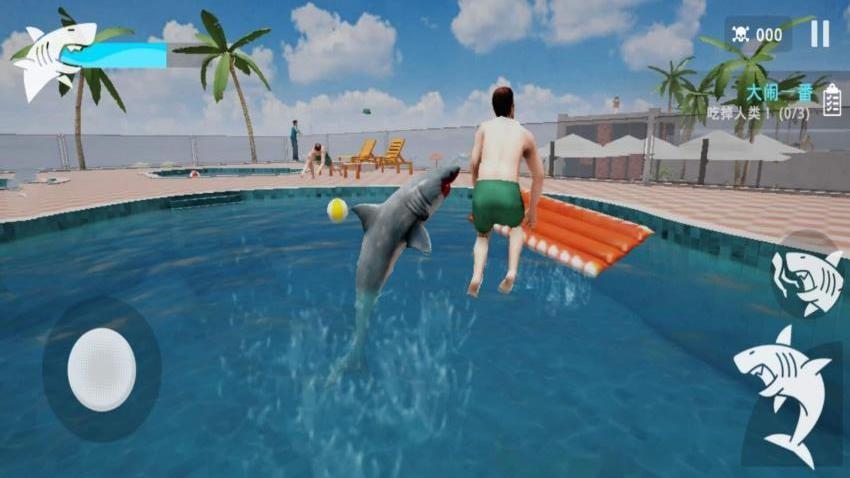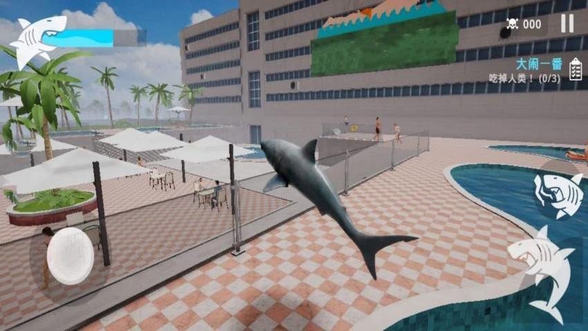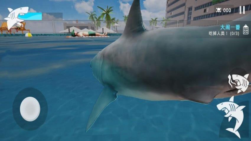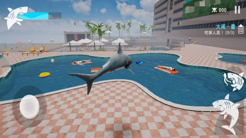 1、跳跃到游泳池里面,你可将鲨鱼的踪迹隐藏起来,不能让其他猎物发现相应情况。
