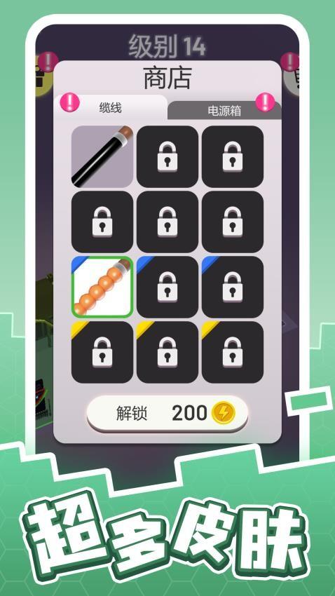 游戏中也会出现一些限定皮肤,电线和电箱将会有不同的装饰,你可在商店里面逐步解锁相应元素。