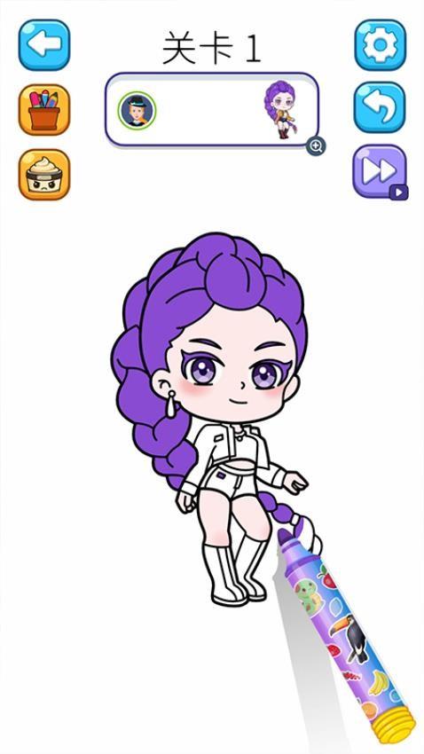 游戏中你还能见到许多萌趣可爱的人物,你可根据她们的具体形象来挑选更适合的填涂方式。
