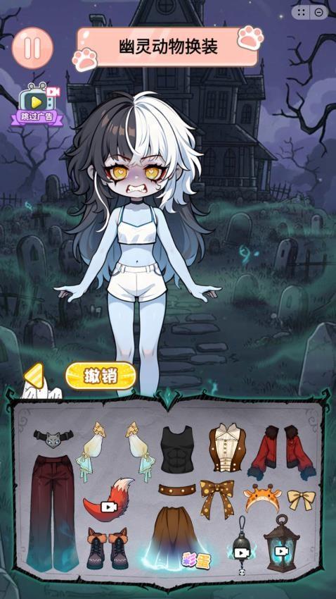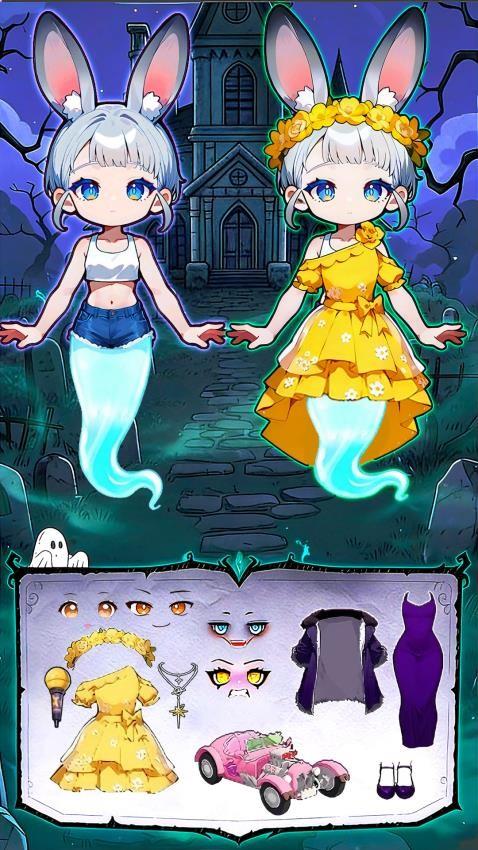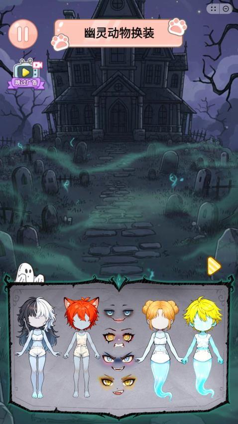 《果冻贴安静书》是一款“萌系灵异风”的幽灵动物换装小游戏:在鬼屋墓园的背景下,你可以为幽灵形态的角色搭配发型、五官与猫耳、兽尾等动物元素,还能选择日常装、国风旗袍等服饰并解锁幽灵特效装饰,轻松打造专属的可爱幽灵小动物形象。