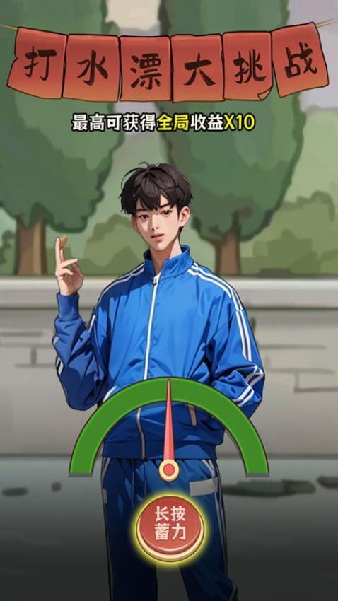 2、不同的游戏挑战内容,可以在游戏界面挑战打水漂玩法,长按蓄力投掷石头。