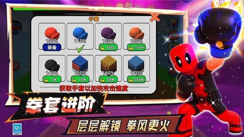 2、玩家可以解锁不同的拳击手套,你可关注它们速度快慢和具体的力量值等情况。