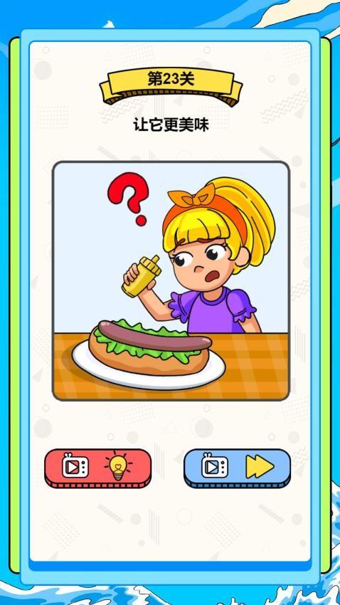 2、第23关界面如图所示,如何才能让食物变美味,手指在屏幕的食物绘画,添加其他调味内容。