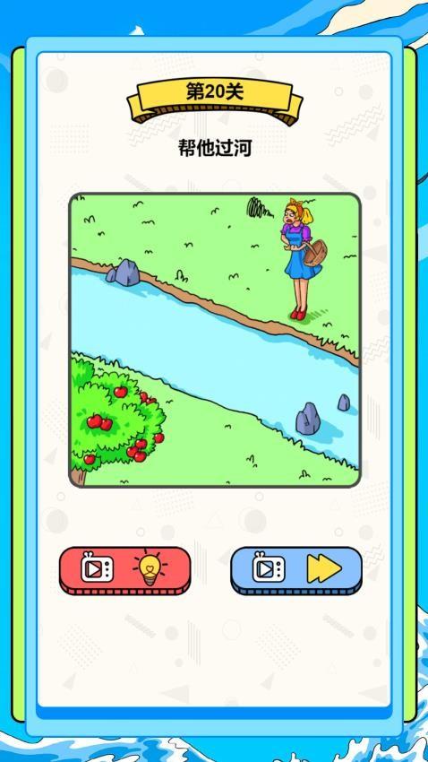 4、第20关,您需要在游戏帮助角色过河,在正确的区域绘画就可以帮助角色过河。