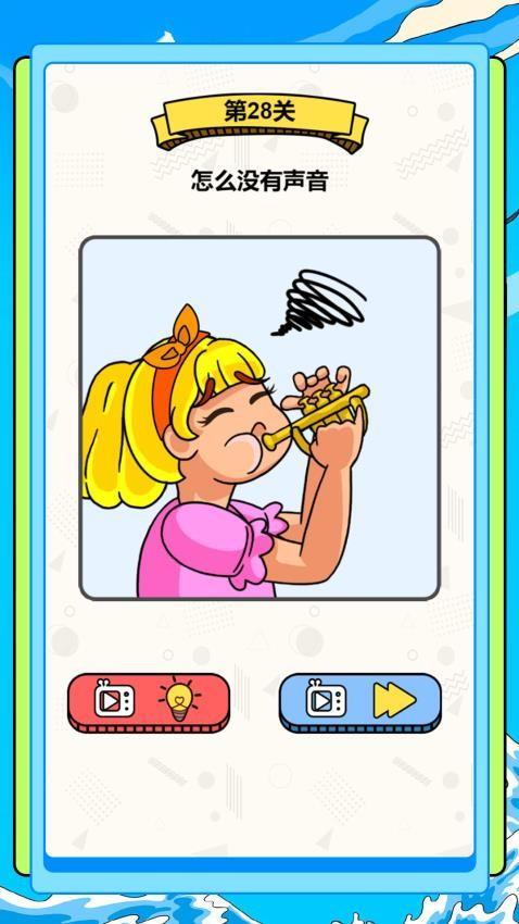 5、28关界面,显示吹乐器的玩法,你需要将乐器绘制完整,一个完整的乐器才能发出声音。