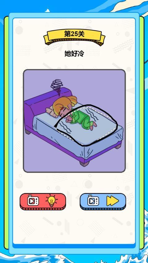3、第25关界面,画面显示一个角色,需要为角色绘制一个被子,提升角色温度。