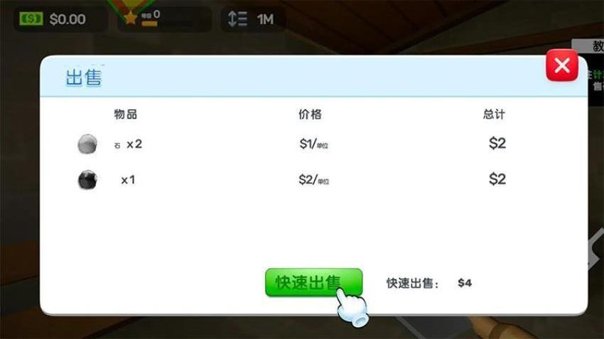 4、将你所挖到的两件宝物售卖出现,可关注它们的数量、单价、总价,便可知晓具体细节。