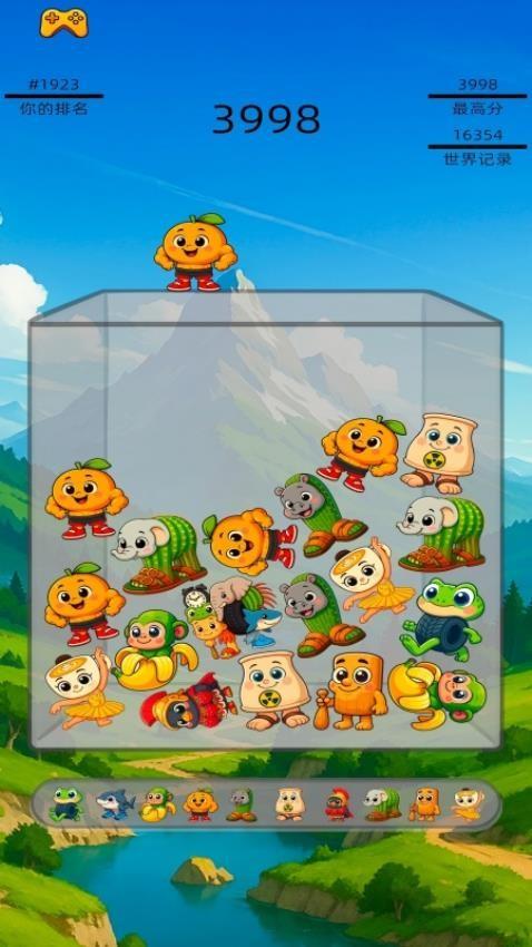4、顶部区域显示玩家合成的分数,当前是3998分,箱子没有满就可以一直放入新的动物。