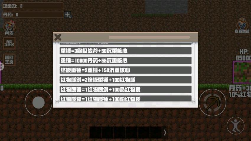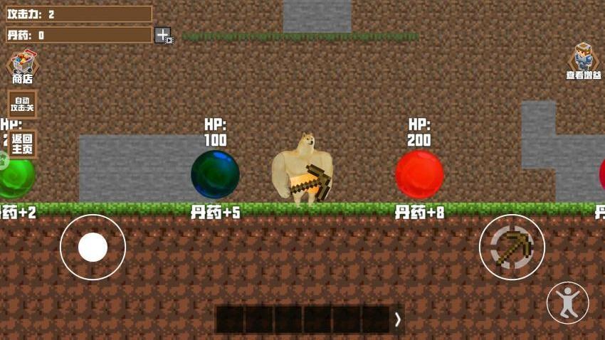 4、商店界面:木镐=25丹药、石镐=2木镐、铁镐=2石镐、金镐=2铁镐,查看不同的物品。