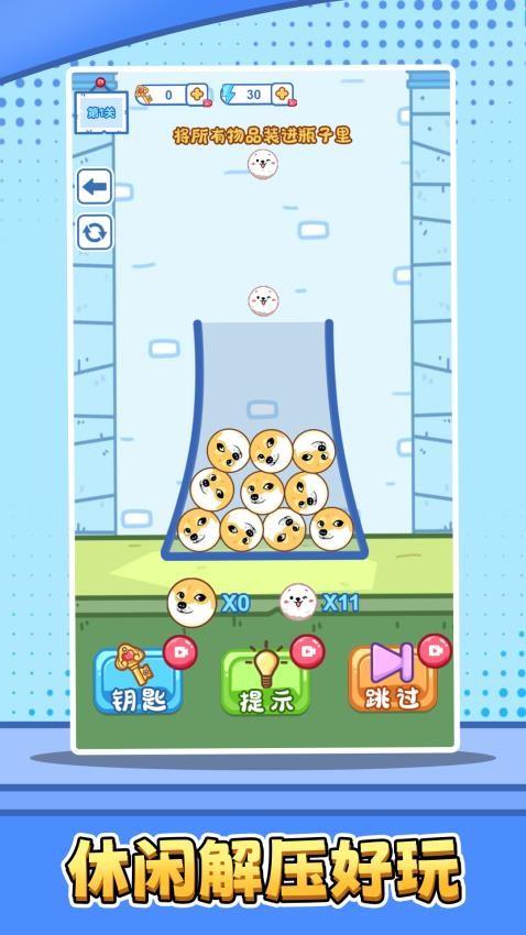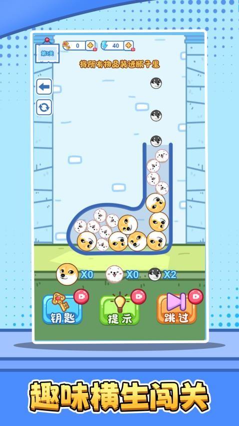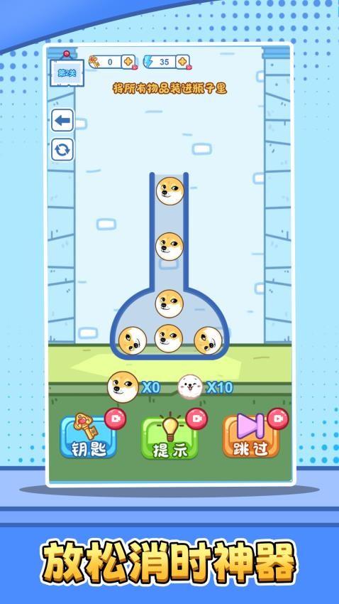 3、瓶子的空间是有限制的,所以你需要分析如何才能将全部狗头放入到瓶子,也可以查看提示。