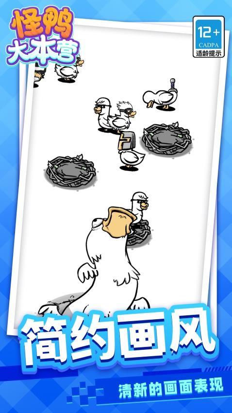 《怪鸭大本营》作为一款有着简笔画风格的放置休闲游戏,融入了养成、收集等元素,你将从一只普通的鸭子开始培养,对鸭子的进化进行选择,筛选自己心仪的怪鸭品种,逐渐培养出符合自己需求的稀有品种。游戏中提供了数以百计的怪鸭造型,从长发到卷发,从头盔到帽子,更有丰富的翅膀外观和身体等你选择。仅此三种可变化设定,就足以产生出数十万计的造型拼搭组合。