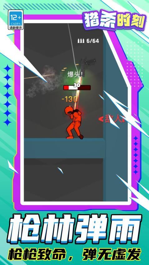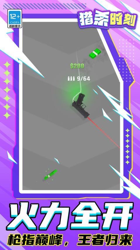 《猎杀时刻》是一块非常好玩的休闲益智类闯关游戏,游戏中玩家将操控一把手枪在关卡中进行闯关,玩家需要利用手枪开火后的子弹弹射机制,在前往终点前玩家消灭拦在路上的橡皮人,到达终点时玩家的收集奖励越高玩家的得分就越高,游戏玩法简单有趣感兴趣的快来挑战吧!