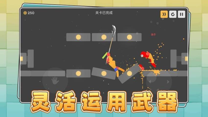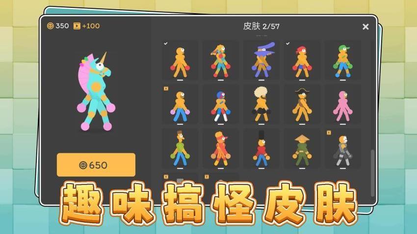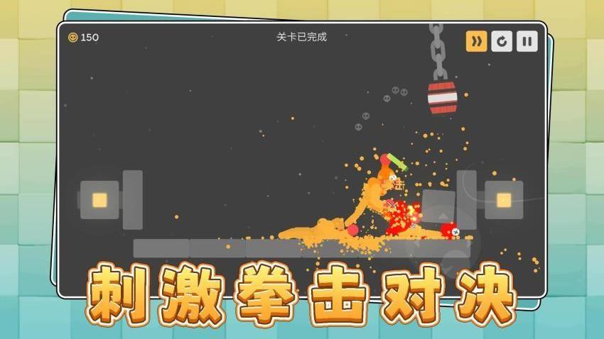 玩家将操控造型多变的橡皮人角色,参与拔河对决、拳击对抗和武器战斗等多种趣味玩法。游戏提供丰富的皮肤系统,包含独角兽、戴帽造型等57款个性化外观可供收集。通过完成关卡可获得金币奖励,用于解锁新皮肤和升级装备。每关设有不同的挑战目标,如击败巨型首领或完成特定动作,带来多样化的游戏乐趣。