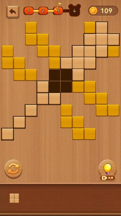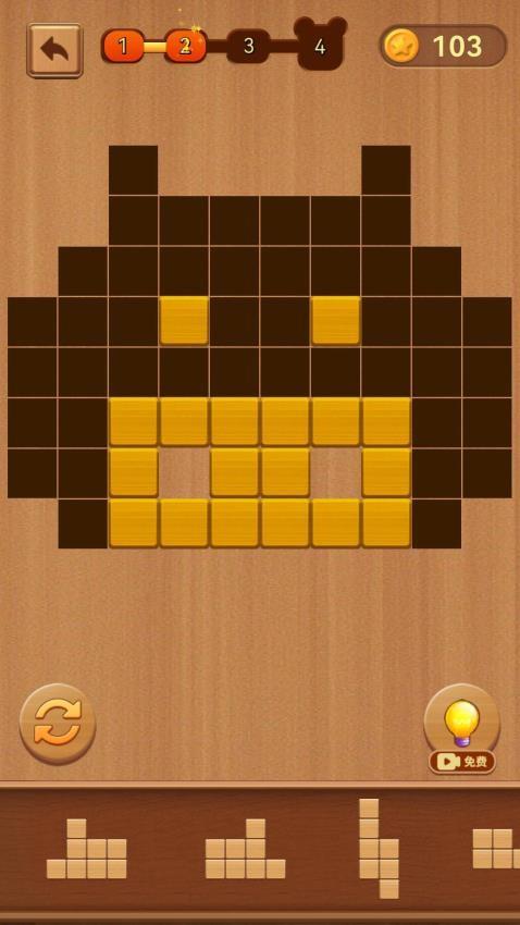 拖动底部给出的方块组到上面的拼图中,最终拼成完整的一副拼图。注意,必须所有空格全部填满方可获胜。