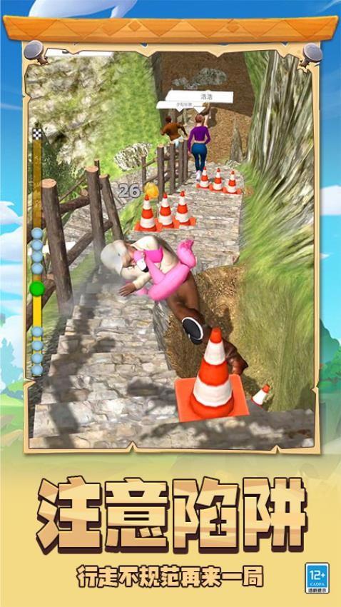 这是一款紧张刺激的跑酷竞速游戏。玩家需要在游戏前选择合适的人物角色,随后踏上充满危险的奔跑之旅。在蜿蜒的山间小径上,不仅有凶猛的狮子等障碍增加紧张感,还有各种陷阱需要躲避。游戏要求玩家健步如飞,以快速的动作和帅气的姿势跨越障碍。同时,要注意直线行走时的碰撞,把挡路者推倒一边。在险境中不断奔跑,挑战自己的反应速度和操作技巧,体验刺激的求生竞速。