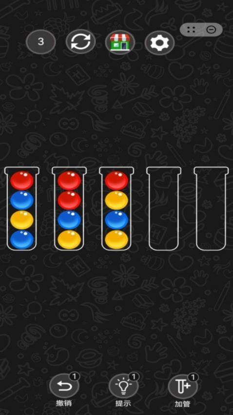4、支持加管功能,如果画面剩余的空白瓶子不够使用,可以在关卡添加一个新的瓶子。