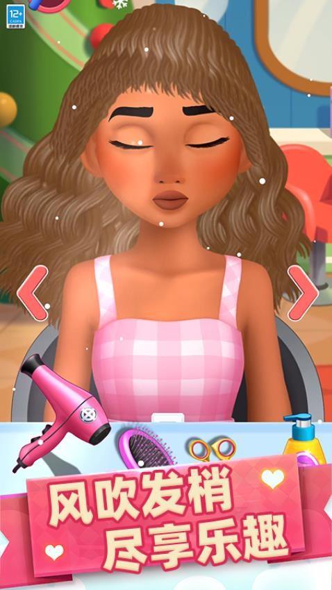 在这里,你将化身时尚造型师,为不同风格的女孩精心打造独特造型。从洗发护理开始,用吹风机、卷发棒等工具吹拉卷烫,设计出迷人发梢。还能挑选各式各样华丽服饰,搭配精致首饰、时尚帽子与个性眼镜。无论是圣诞公主风、魔法芭比风还是特色创意风,都能自由搭配。快来开启这场时尚换装盛宴,展现你的审美与创意。