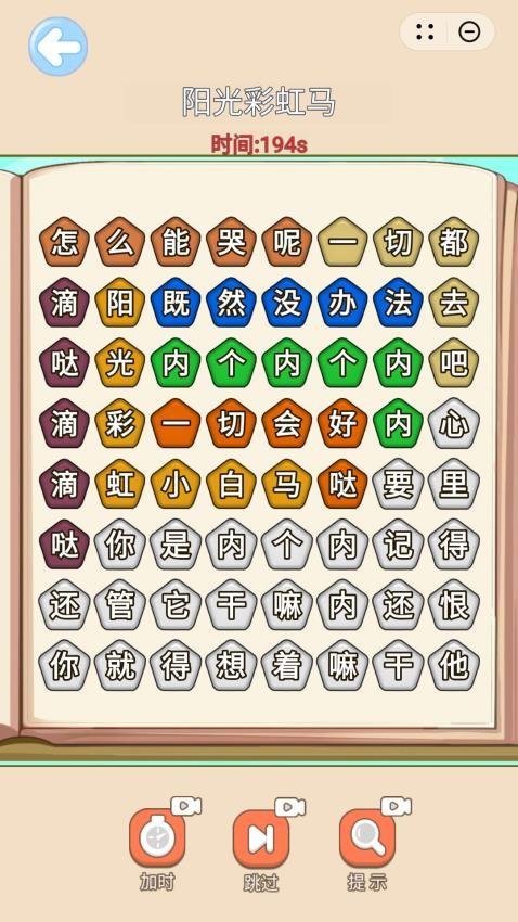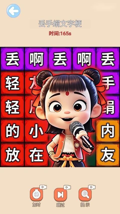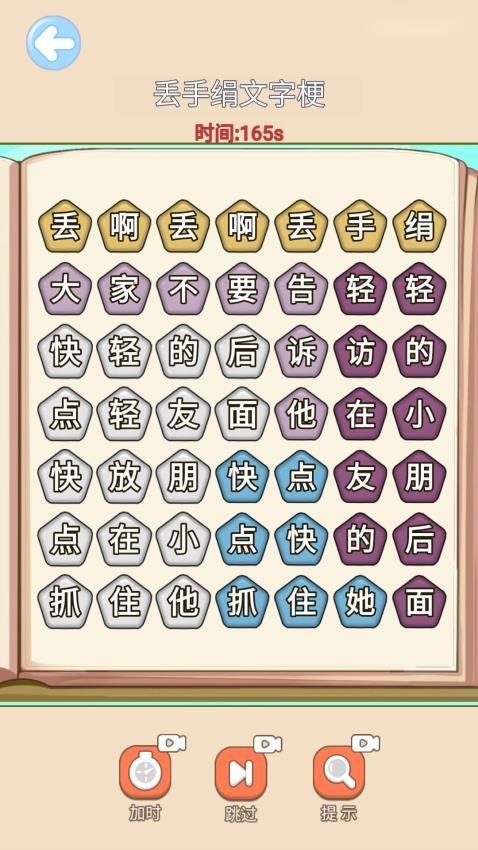 1、丢啊丢手绢手游提供很多文字游戏类型,可以在游戏界面将文字连接成为歌词。