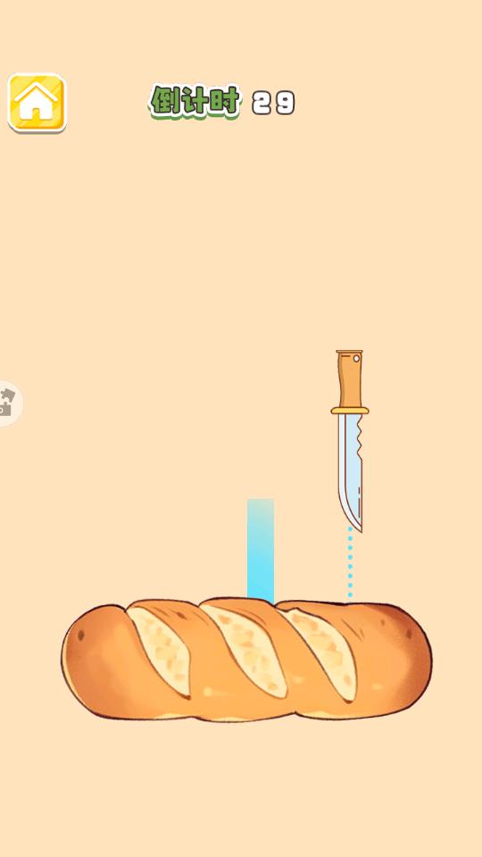 5、支持切面包玩法,控制刀具在指定的区域切面包才能完成挑战,切割错误就挑战失败。