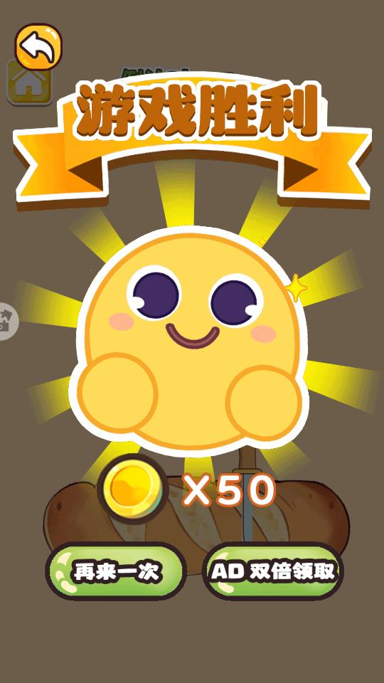 4、如图所示,弹出游戏胜利的界面,可以获取50金币,可以继续挑战新的玩法。